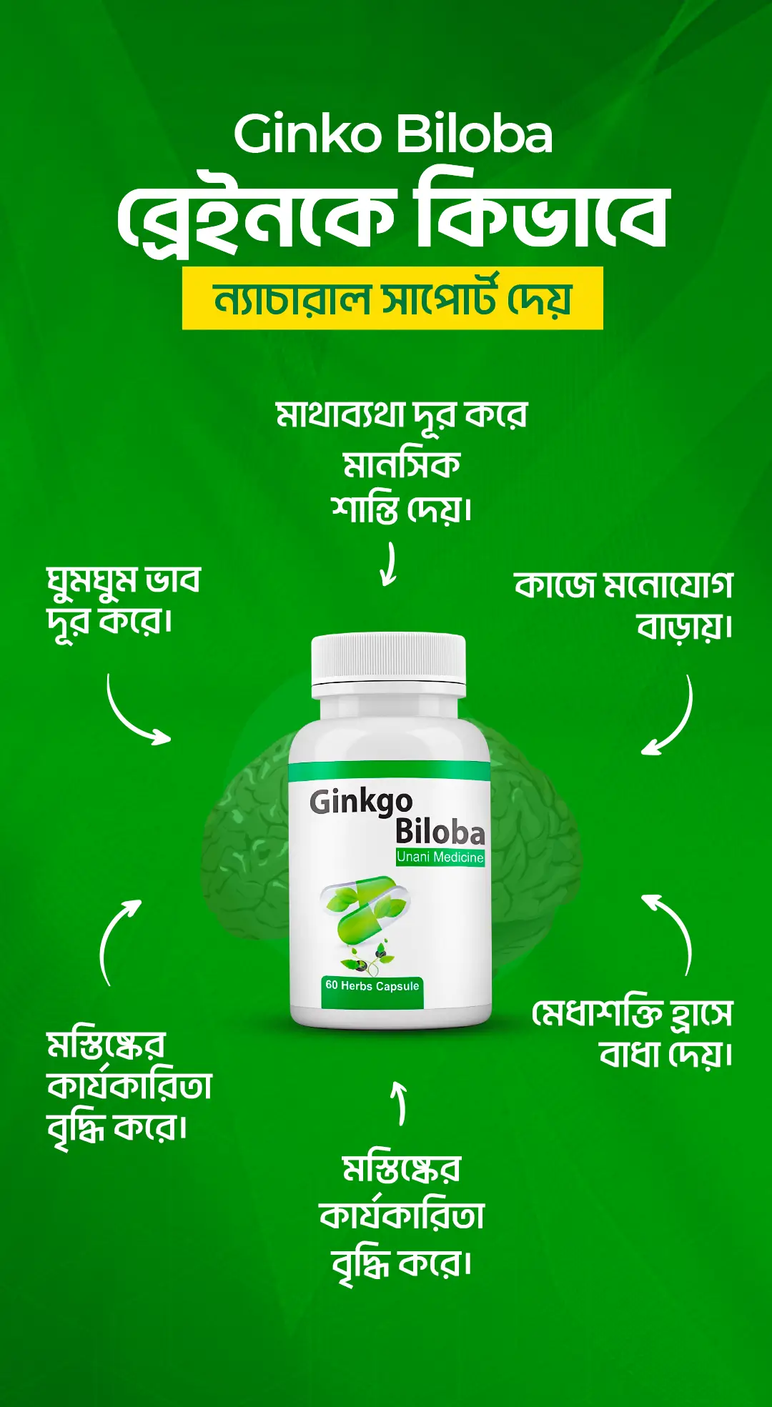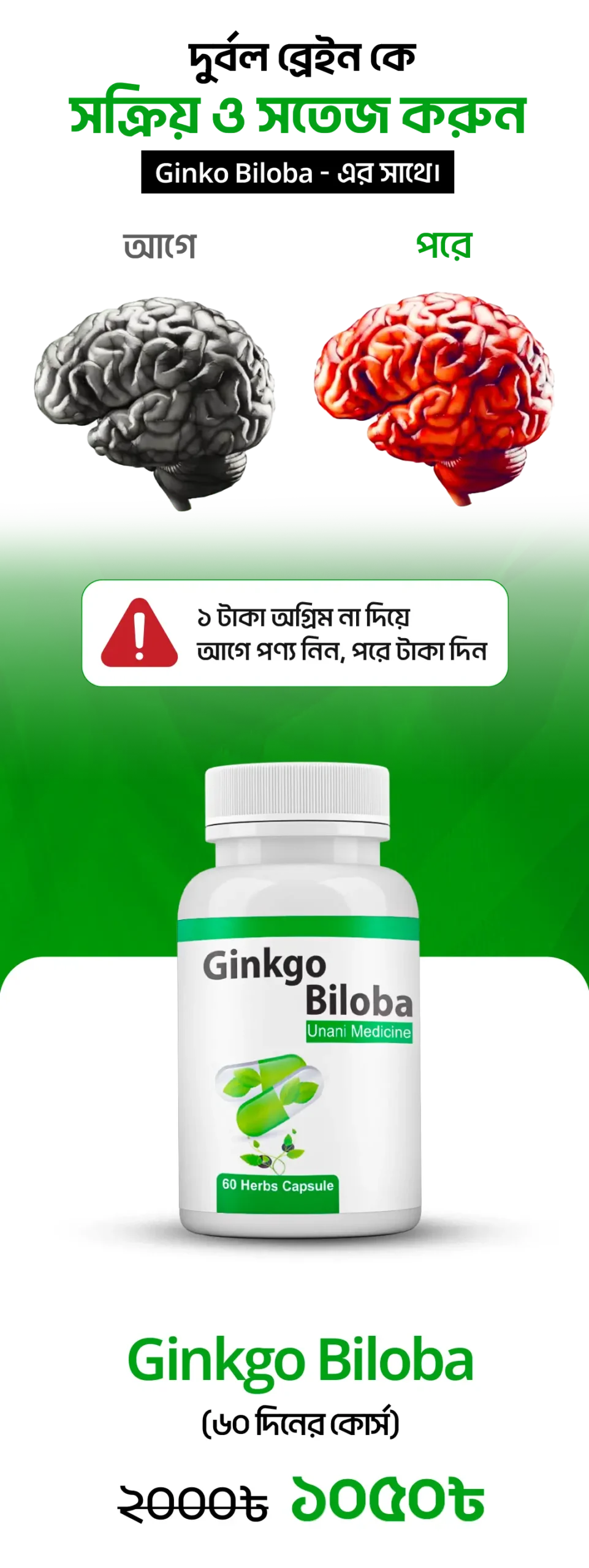 Ginkgo Biloba ব্রেইনের রক্ত সঞ্চালন বাড়িয়ে মনোযোগ, ফোকাস ও ঘুম ঠিক রাখে এবং মাইগ্রেনের সমস্যা দূর করে।